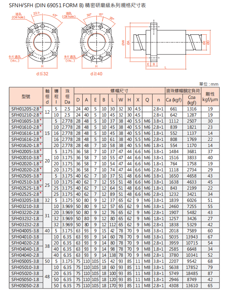 SFH系列为高速强化防尘型滚珠螺杆,具有高速性、高负载及高刚性等特性,具有高顺畅度,且SFH的特殊设计使其防尘效果大幅的提升,循环结构的强化使其更适合在高速的环境下运作。