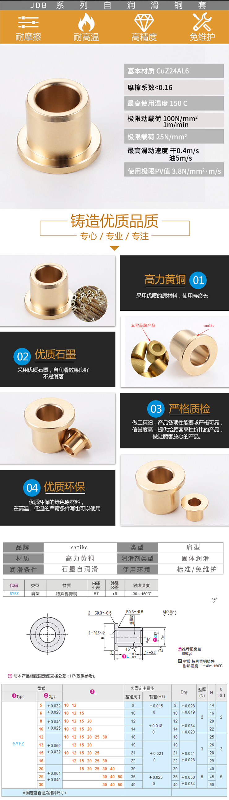 6. 在运作时能形成转移膜,起到保护对磨轴的作用,无咬轴现象;
